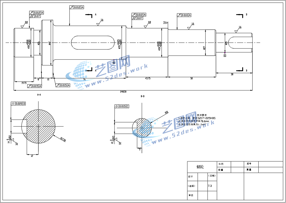 蜗轮轴CAD零件图