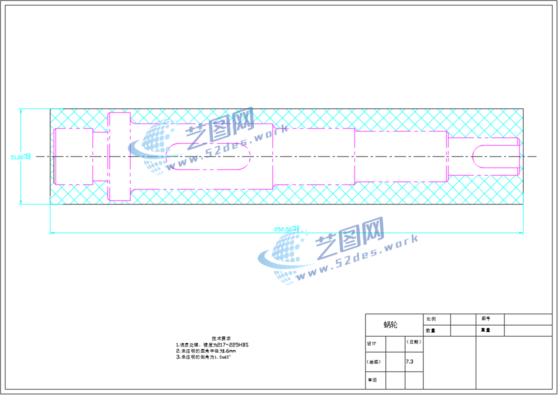 蜗轮轴CAD毛坯图