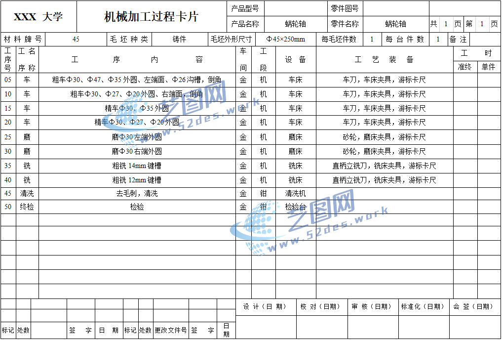 机械加工工序卡