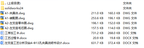 文件内容:solidworks24版三维模型、CAD图纸、工艺卡、工序卡、设计说明书solidworks24版本模型源文件,可编辑,含参数 左支座夹具solidworks24版三维装配模型 左支座夹具solidworks24版三维装配模型 左支座夹具CAD装配图 左支座CAD零件图 左支座CAD夹具体 左支座CAD毛坯图 机械加工工艺卡 机械加工工序卡 左支座设计说明书目录 左支座设计说明书内容