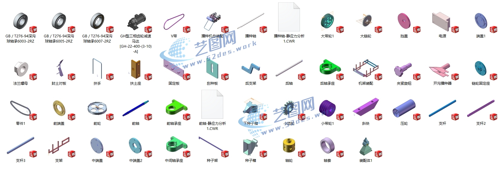 大豆播种机solidworks24版三维模型源文件,可编辑